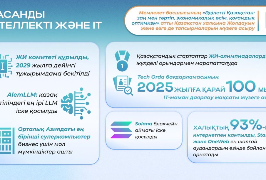 «2024-2025 жылдар ЖИ саласындағы маңызды бастамалар кезеңі болды. 2029 жылға дейінгі тұжырымдама бекітілді, ЖИ және цифрлық трансформацияны дамыту стратегиясы, сондай-ақ жасанды интеллекті бойынша заң жобасы әзірленуде», — деді Жаслан Мәдиев.